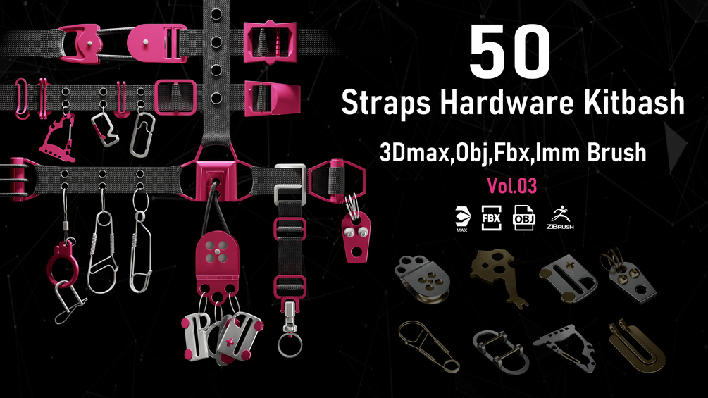 50 Straps Hardware Kitbash 3D Models (fully unwraped) + imm brushes_VOL03